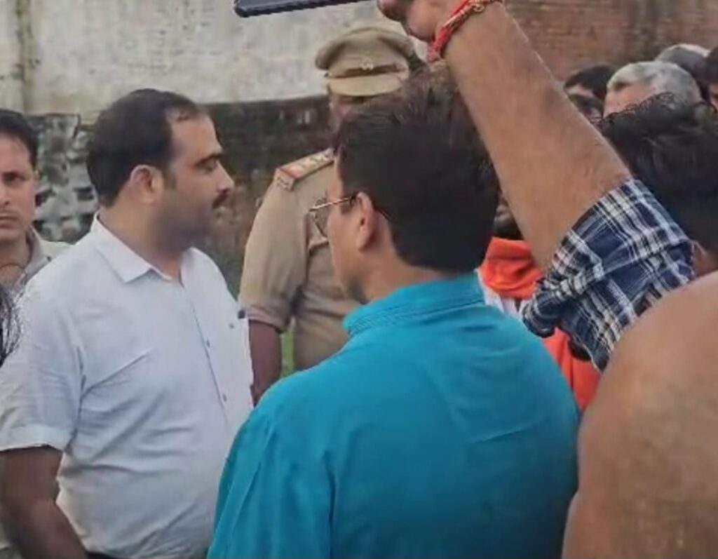 विहिप जिलाध्यक्ष बृजेश पाण्डेय ने तुरंत CDO और DM को जानकारी देकर बीच सड़क पर ही धरने पर बैठकर श्री हनुमान चालीसा का पाठ करने लगे। कुछ ही देर में हड़कंप मच गया। आनन फानन में दो थानों के थानाध्यक्ष 50 से भी अधिक पुलिस कर्मियों के साथ पहुंच कर मामले को शांत कराने का प्रयास करने लगे। उसके बाद BDO आकर गलती स्वीकार किये। कुछ देर बाद SDM शोहरतगढ़ व अन्य अधिकारी पहुंचे।