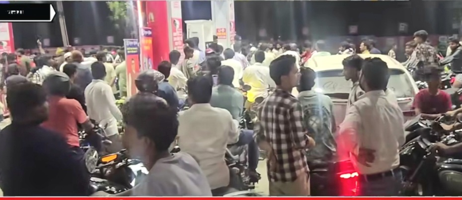 पेट्रोल डीजल लेने के लिए लोग पेट्रोल पंपों पर जमा हैं। शहर से लेकर